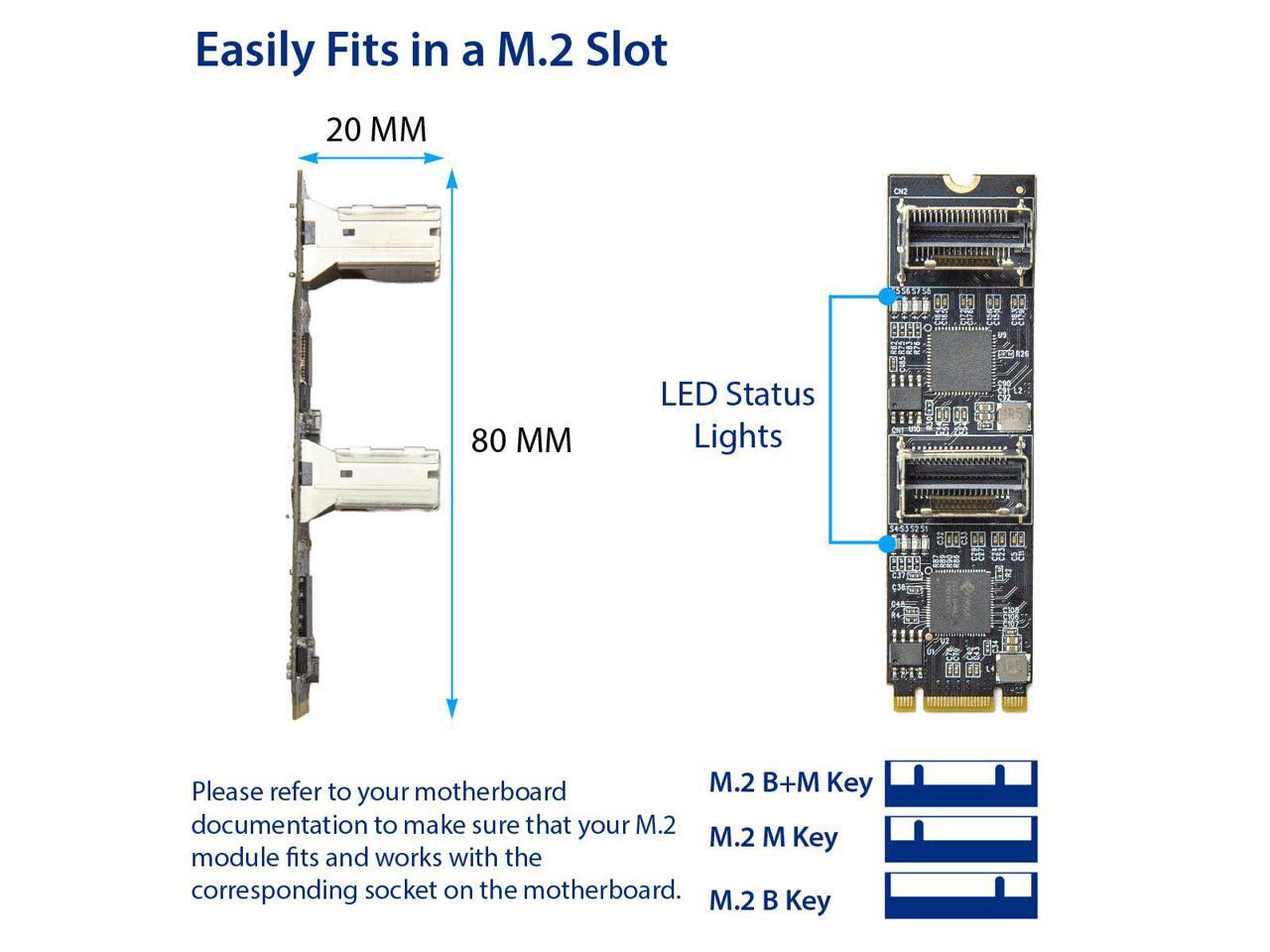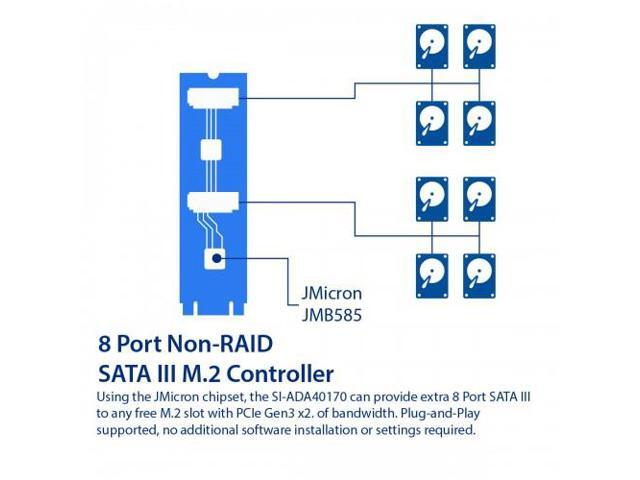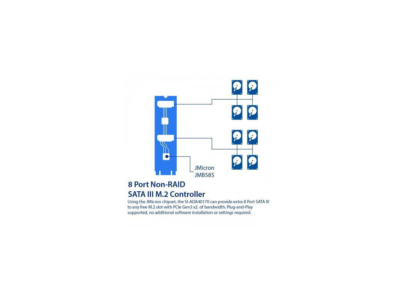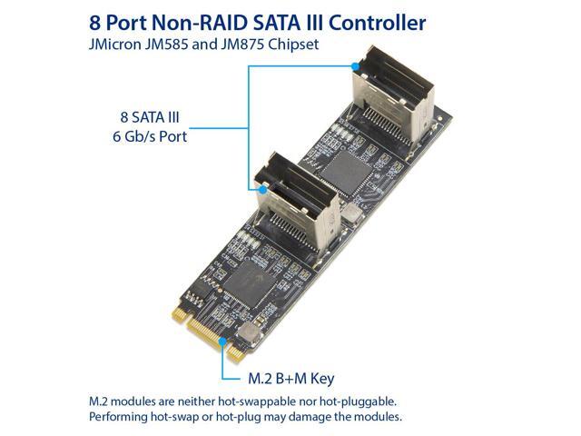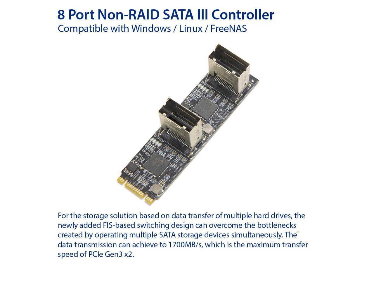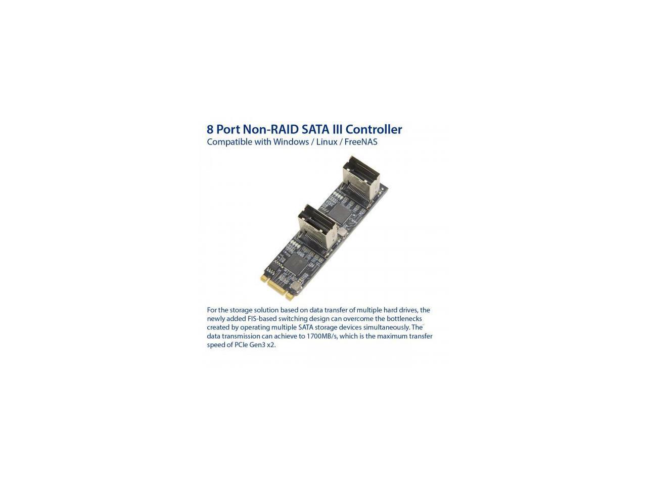 - Connect eight SATA drives to a M.2 B+M Key Connection, providing up to 1700 MB/s speed. Plug and play supported, no additional software installation or setting required. Two Mini SAS to 4 SATA Port is included