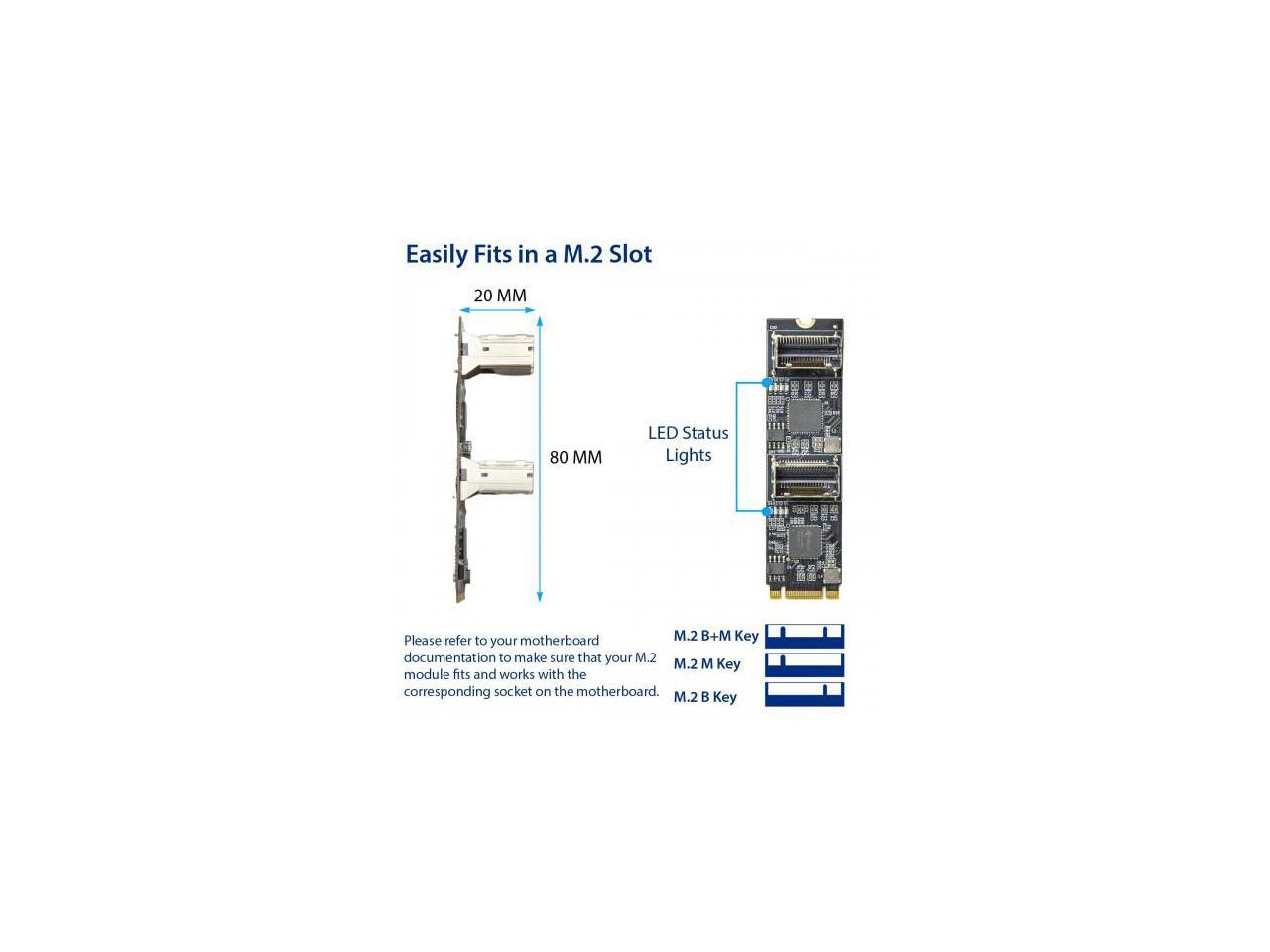 Syba 8 port Non-RAID SATA III 6Gbp/s to M.2 B+M Key Adapter PCI-e 3.0 x2 Bandwith - SI-ADA40170