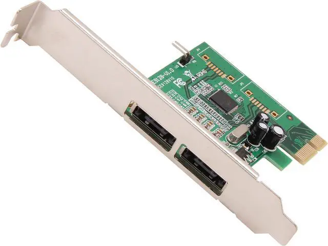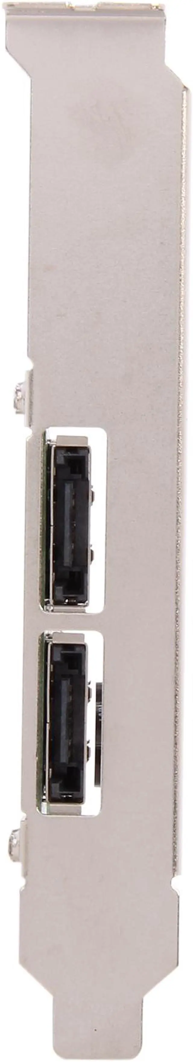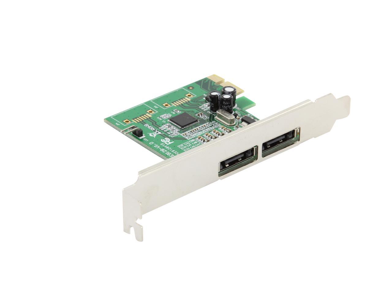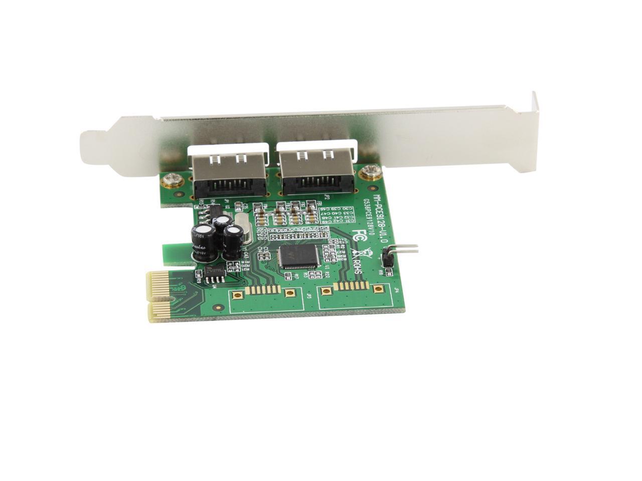 This small and compact card fulfills features for modern SATA III hard drives. These features include: Hot-plug, Hot-swap, NCQ, and Port Multiplier FIS switching all part of the newest Marvell 88SE9120 Chipset.Host Interface: PCI Express x1Data Transfer Rate: 6 Gbit/sDrive Type: Serial ATA/600Ports: 2 x Serial ATA/600 Serial ATA ExternalForm Factor: Low-profile Plug-in CardPackage Contents: 2 eSATA Ports PCI-e Controller Card Driver CD User Manual Low Profile Bracket Green Compliant: YesGreen Compliance Certificate/Authority: WEEEPackage Contents 2 eSATA Ports PCI-e Controller Card Driver CD User Manual Low Profile Bracket