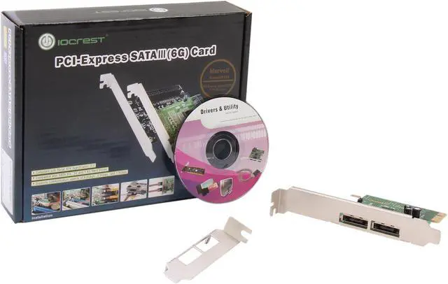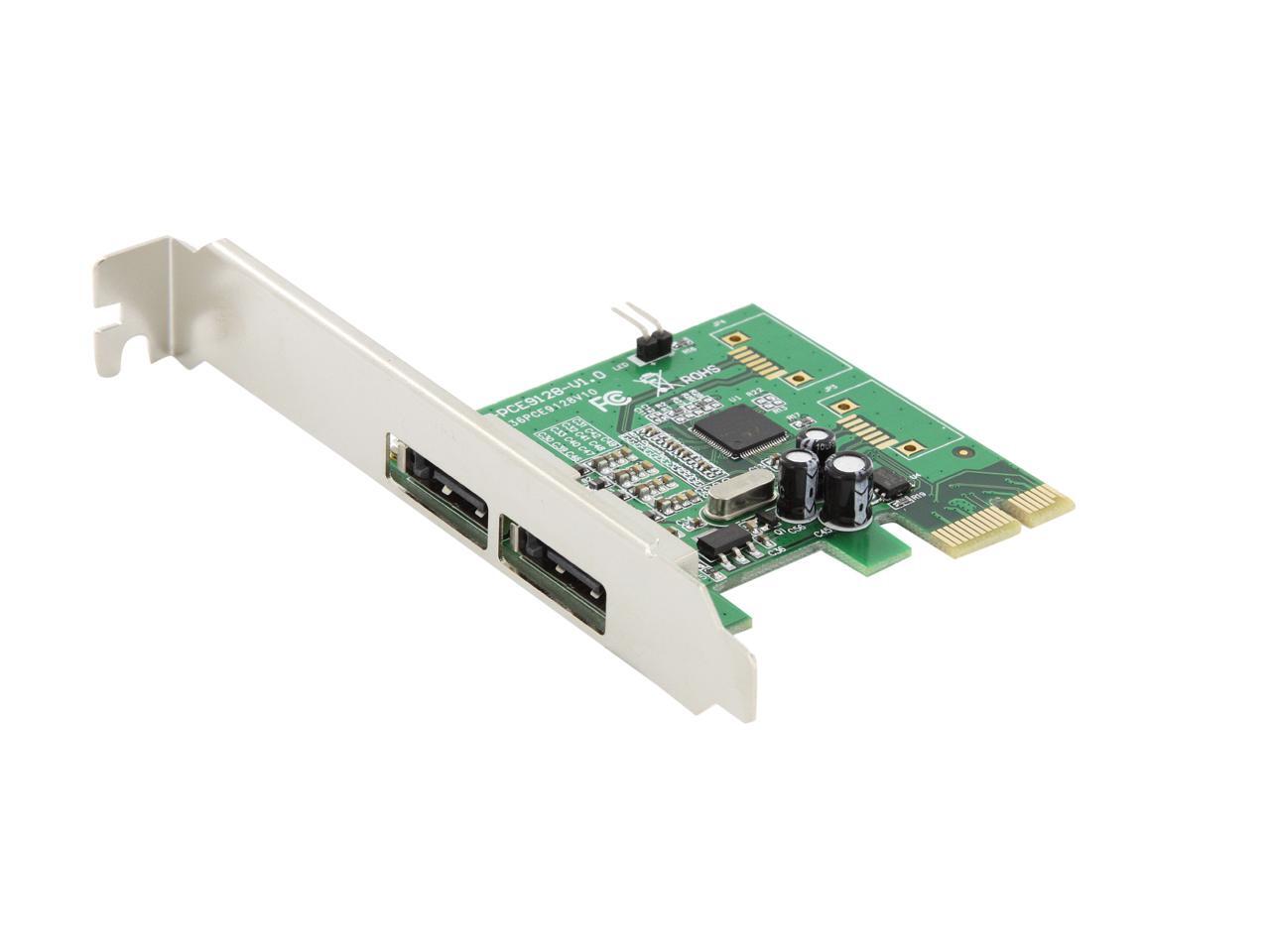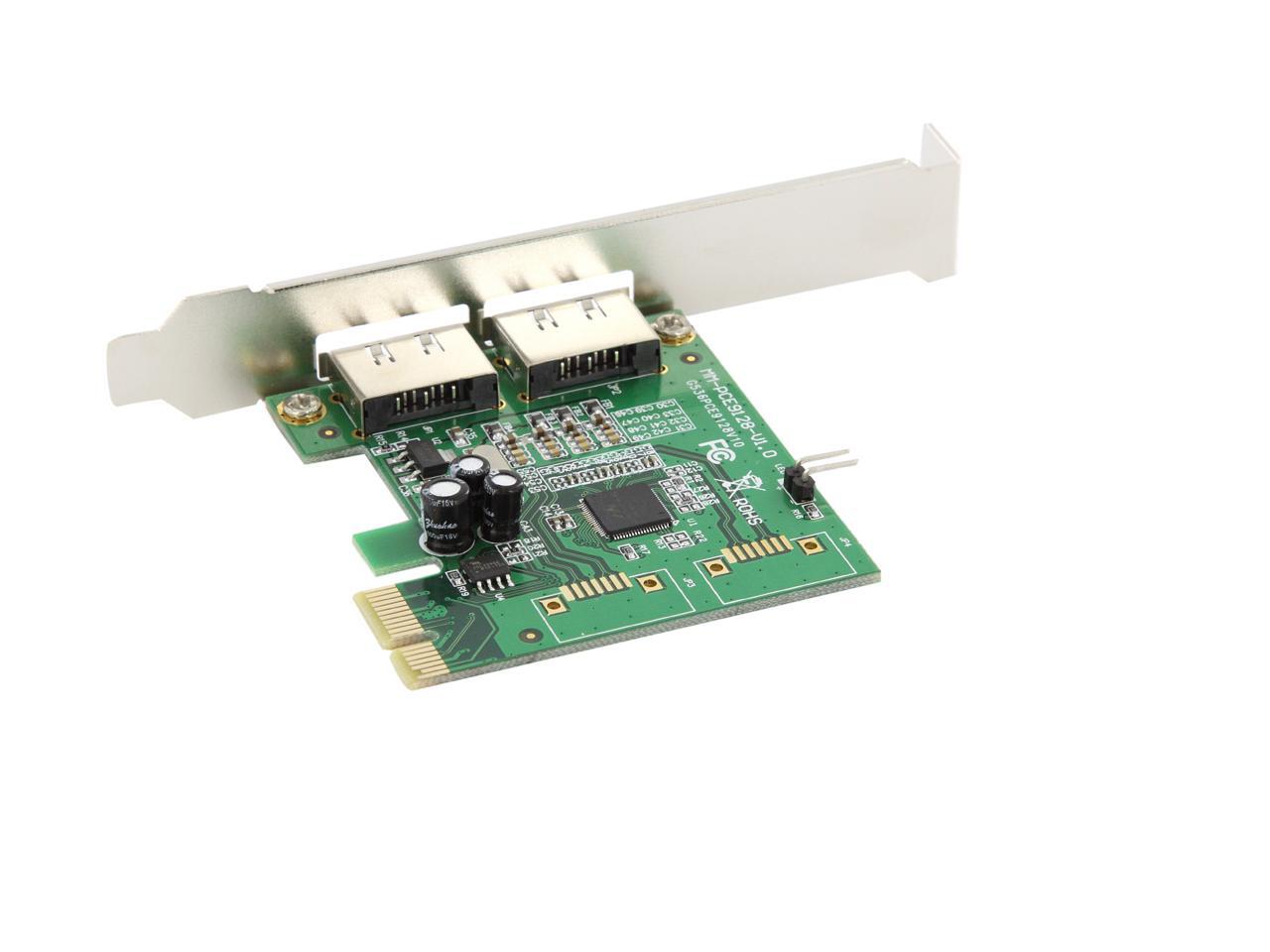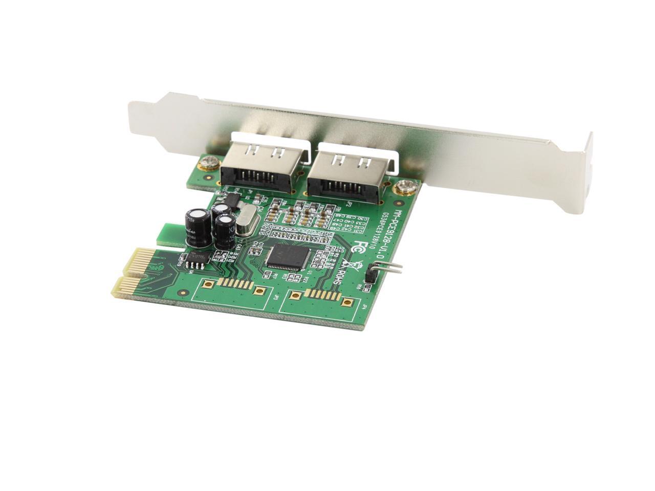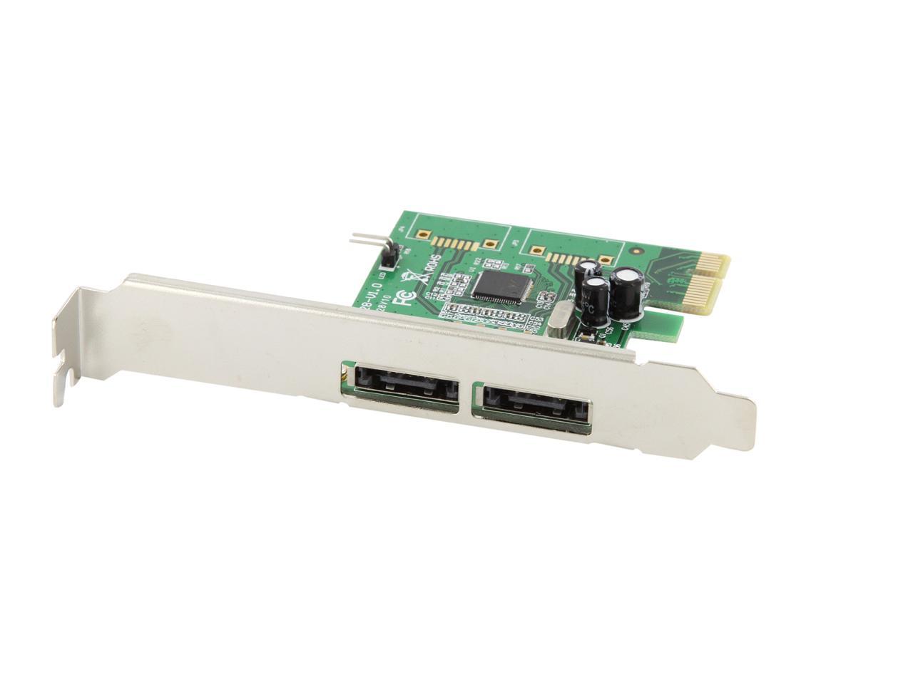 This small and compact card fulfills features for modern SATA III hard drives. These features include: Hot-plug, Hot-swap, NCQ, and Port Multiplier FIS switching all part of the newest Marvell 88SE9120 Chipset.Host Interface: PCI Express x1Data Transfer Rate: 6 Gbit/sDrive Type: Serial ATA/600Ports: 2 x Serial ATA/600 Serial ATA ExternalForm Factor: Low-profile Plug-in CardPackage Contents: 2 eSATA Ports PCI-e Controller Card Driver CD User Manual Low Profile Bracket Green Compliant: YesGreen Compliance Certificate/Authority: WEEEPackage Contents 2 eSATA Ports PCI-e Controller Card Driver CD User Manual Low Profile Bracket