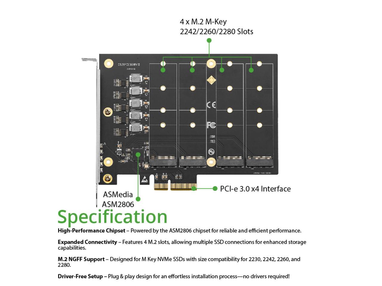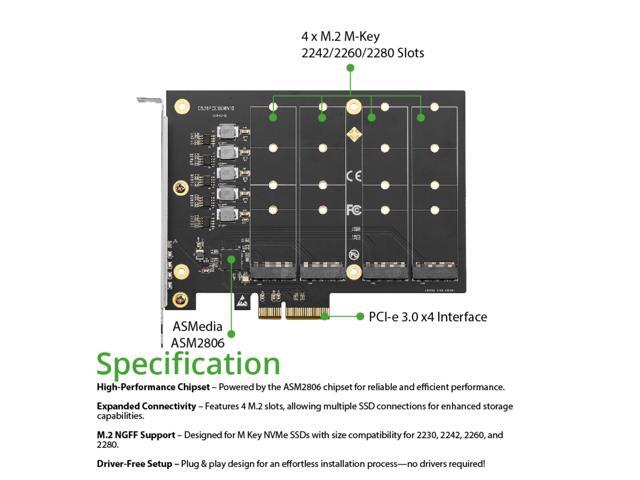 PCIe 3.0 x4 to 4-Port M.2 NVMe Adapter Card
