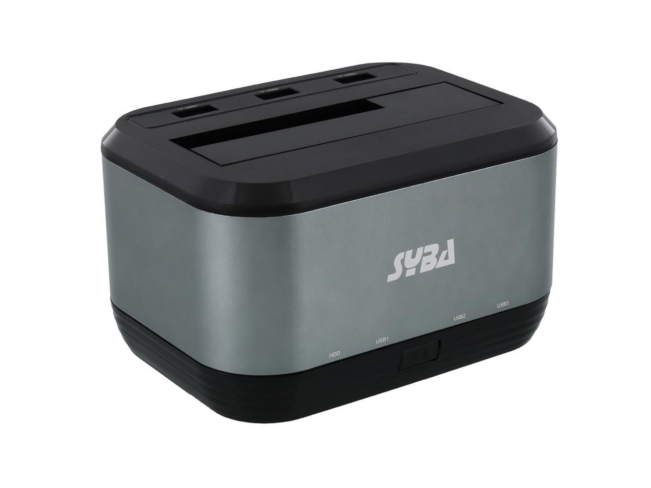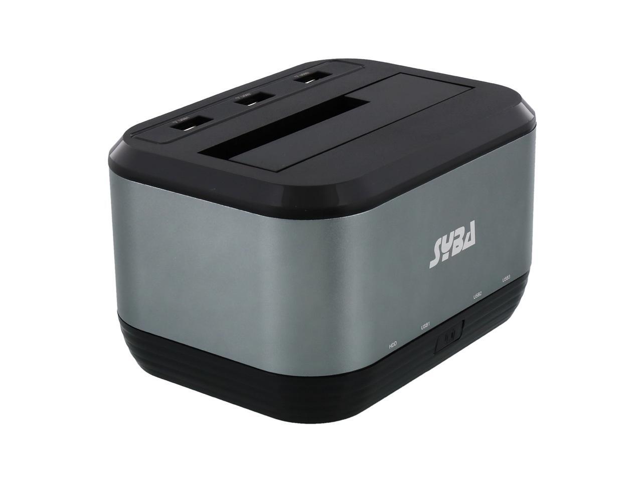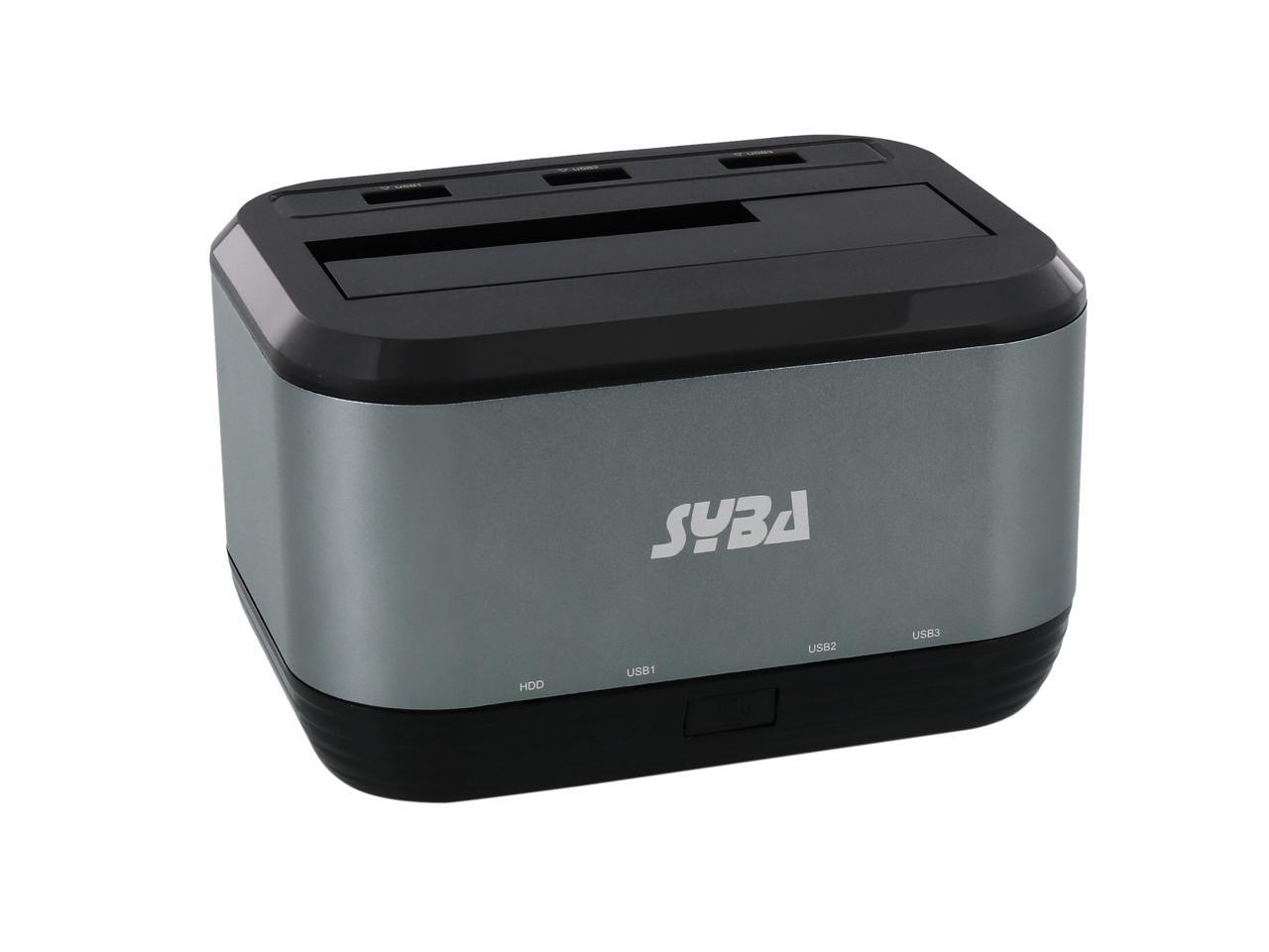 The Syba SY-ENC50082 docking station accepts SATA 2.5” or 3.5” hard drives and SSDs. The docking station uses the JM561 chipset with UASP support and more for maximum performance and features. With the USB 3.0 interface, you can quickly transfer files up to 5 Gbps! value adding features include a USB 3.0 3 port hub, smart charging charging and USB plug-and play. This docking station is compatible with USB 2.0 and USB 3.0 ports.