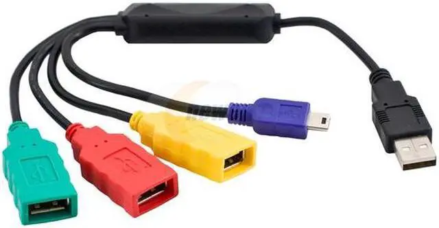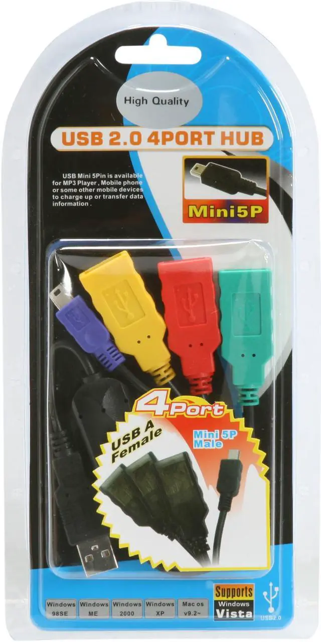 4-Port USB HubThe SYBA SY-HUB20025 USB 2.0 hub features one USB 2.0 upstream port to connect the hub and your computer and four USB 2.0 downstream ports (3x Type A ports, 1x mini port) for connection to a variety of USB devices such as storage devices, scanners, printers, external optical drivers and digital cameras. The cable-shaped design provides maximum portability.