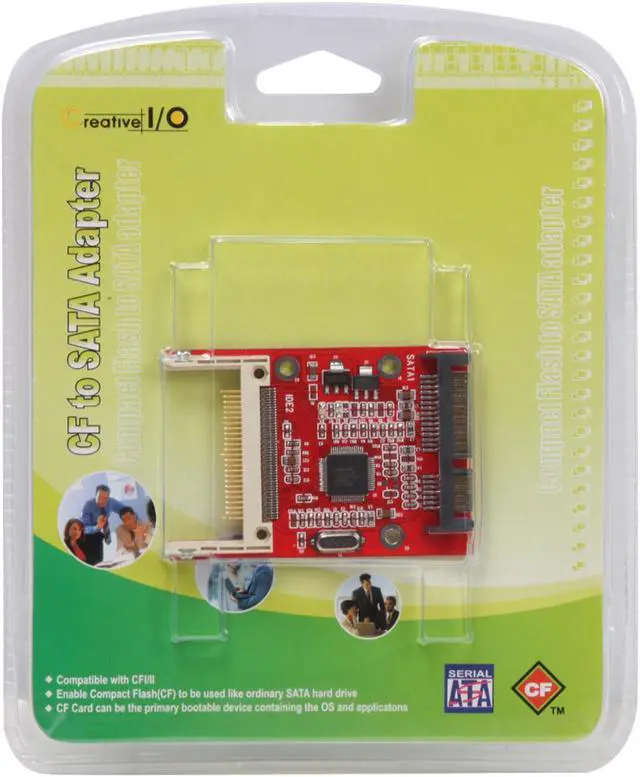 | Specifications | Enable Compact Flash (CF) to be used like ordinary SATA hard drive Compatible with CF I/II Mount directly onto notebook SATA connector CF Card can be the primary bootable device containing the OS and applications Transparent to the Operating System and does not require any drivers Support DMA and Ultra DMA modes (only on flash media card with such features Compatible with DOS, Windows 3.1, NT4, 98SE, Me, 2000, XP, Vista, Mac and Linux |