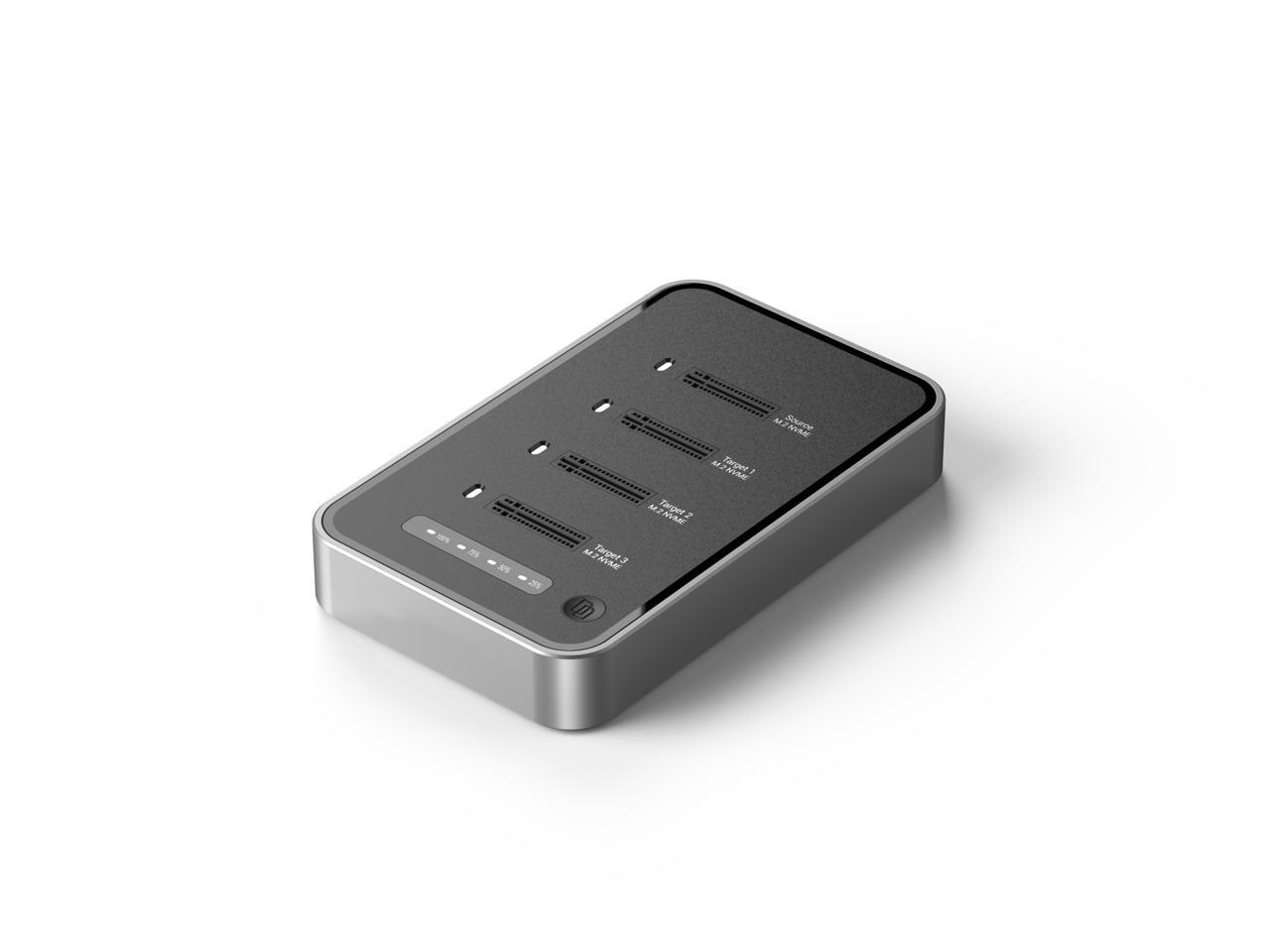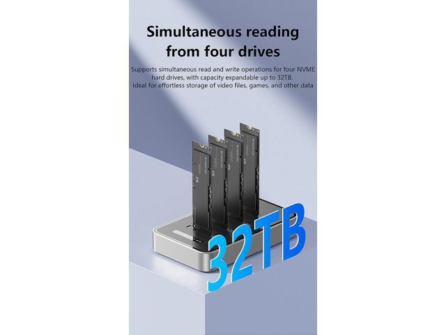 - All 4 bays support M.2 NVMe SSD up to a total 32TB. One touch offline cloner from 1 SSD to 1,2,3 SSDs.