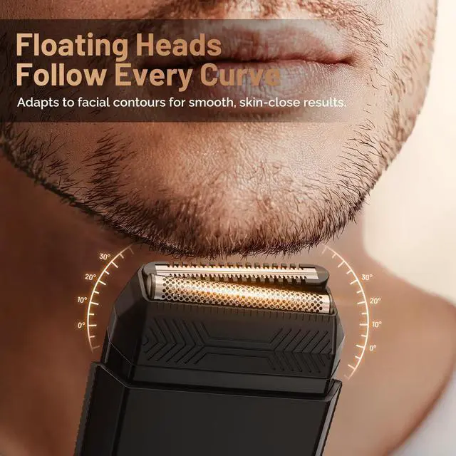Portable Electric Razor for Men, Foil Shaver & Beard Trimmer with Dual-Action System, Floating Head, IPX7 Waterproof, Type C Fast Charge, Digital Display, and Magnetic Cap for Home & Travel