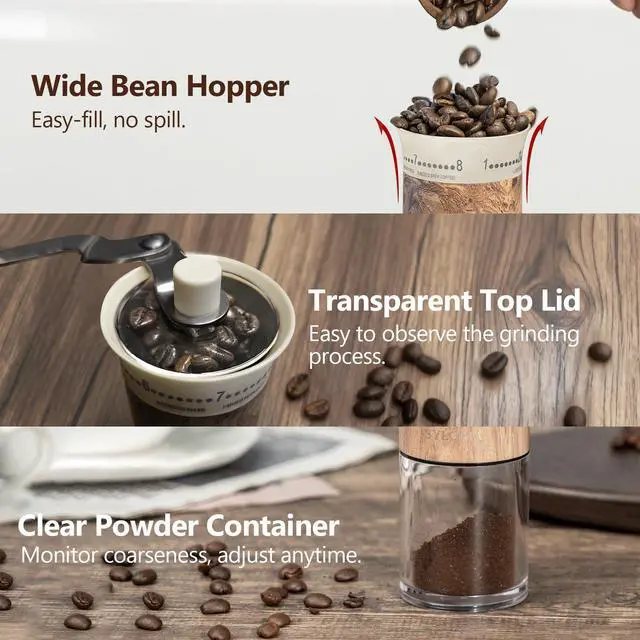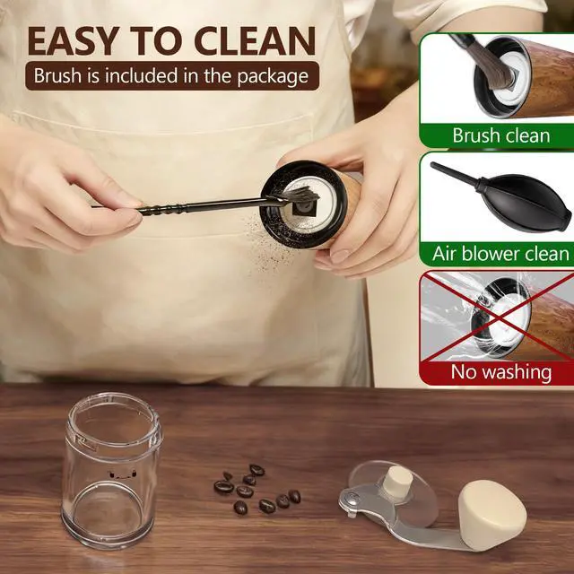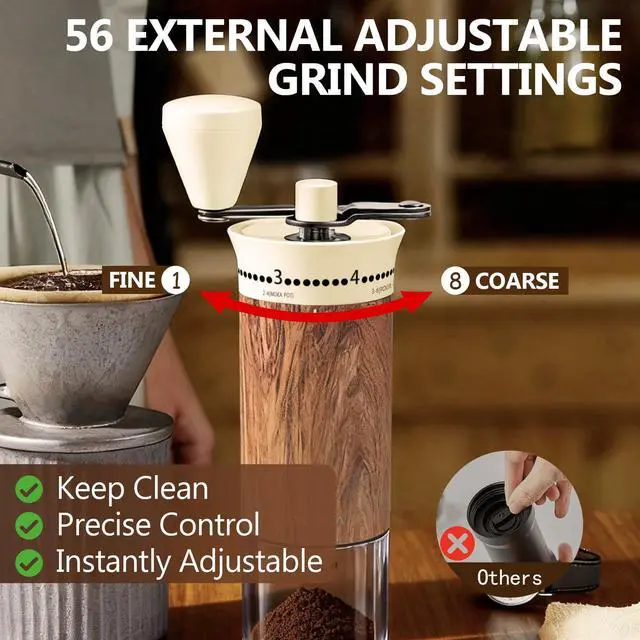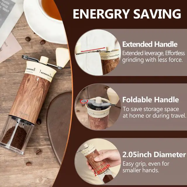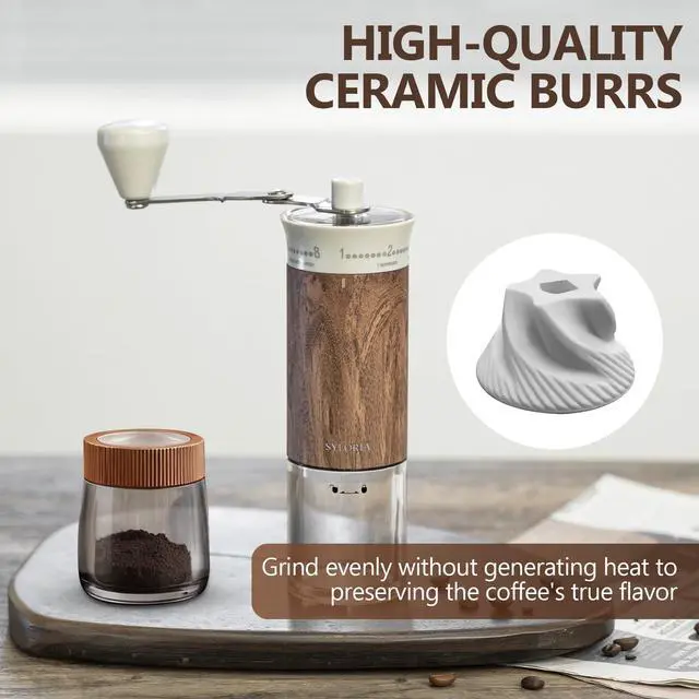 Ceramic burrs grind with low friction and no heat buildup, preserving the coffee’s natural flavor.