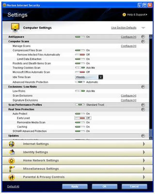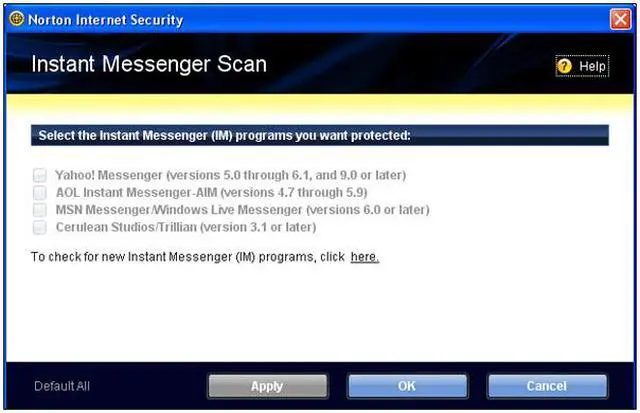 | System Requirements | Microsoft Windows Vista Home Basic/Home Premium/Business/Ultimate* Microsoft Windows XP with Service Pack 2 Home/XP Pro/XP Media Center Edition 300 MHz or faster processor 256 MB of RAM (*512 MB RAM required for the Recovery Tool) 200 MB of available hard disk space Standard Web browser Email scanning supported for POP3- and SMTP-compatible email clients. Support for AntiSpam feature Microsoft Outlook 97 or later Microsoft Outlook Express 6.0 or later Supported instant messaging clients AOL Yahoo! Microsoft Trillian Browser support for Browser Defense and Phishing Protection features Microsoft Internet Explorer 6.0 (32-bit only) and later Mozilla Firefox 2.0 and later *Must meet minimum Windows Vista operating system requirements. |