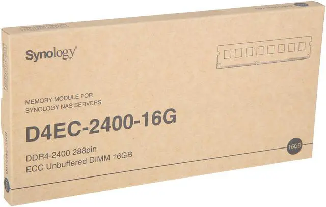 MAIN OVERVIEW FEATURES: Memory Size: 16 GBMemory Technology: DDR4 SDRAMMemory Voltage: 1.20 VMemory Speed: 2400 MHzMemory Standard: DDR4-2400/PC4-19200Error Checking: ECCSignal Processing: UnbufferedNumber of Pins: 288-pinForm Factor: DIMMCompatibility: Synology RackStation NAS: RS4017xs + RS3618xs RS3617xs + RS3617RPxs RS2818RP + RS2418 + RS2418RP + RS1619xs +