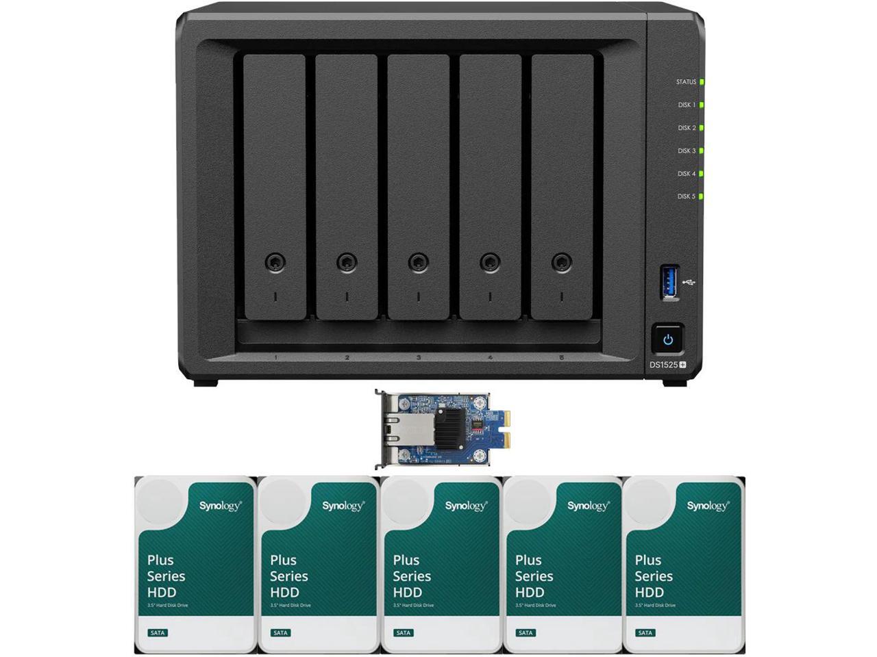 Synology DS1525+ Quad-Core 5-Bay NAS with 8GB RAM and 10TB (5 x 2TB) of Synology Plus Drives and 10GbE Adapter Fully Assembled and Tested By CustomTechSales