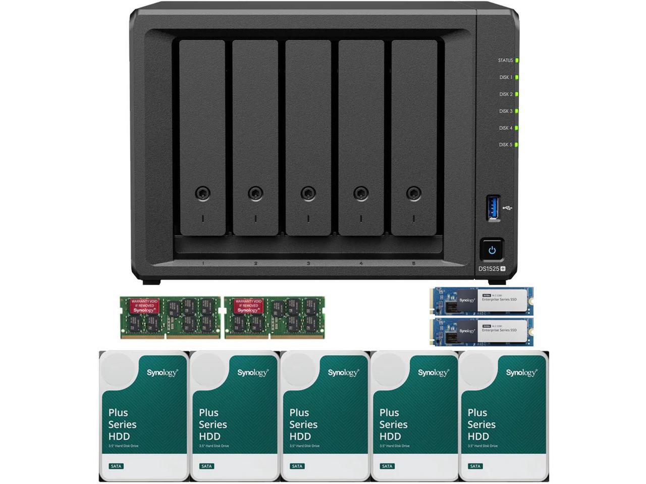 Synology DS1525+ Quad-Core 5-Bay NAS with 32GB RAM and 20TB (5 x 4TB) of Synology Plus Drives and 800GB (2 x 400GB) Synology Cache Fully Assembled and Tested By CustomTechSales