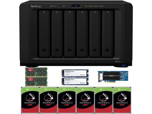 Synology DS1621+ 6-Bay NAS with 16GB RAM, a 2-port 10GbE Adapter and 72TB (6 x 12TB) of Seagate Ironwolf NAS Drives and 800GB (2 x 400GB) Synology Cache Fully Assembled and Tested By CustomTechSales