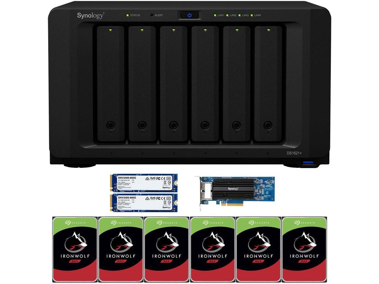 Synology DS1621+ 6-Bay NAS with 4GB RAM, a 2-port 10GbE Adapter and 72TB (6 x 12TB) of Seagate Ironwolf NAS Drives and 1.6TB (2 x 800GB) Synology Cache Fully Assembled and Tested By CustomTechSales