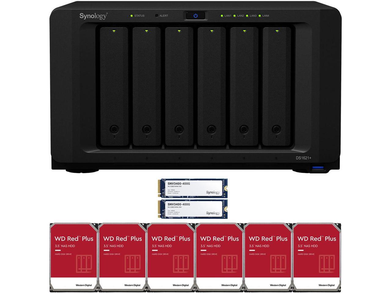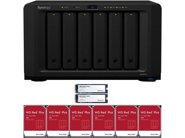Synology DS1621+ 6-Bay NAS with 4GB RAM and 12TB (6 x 2TB) of Western Digital Red Plus NAS Drives and 800GB (2 x 400GB) Synology Cache Fully Assembled and Tested By CustomTechSales