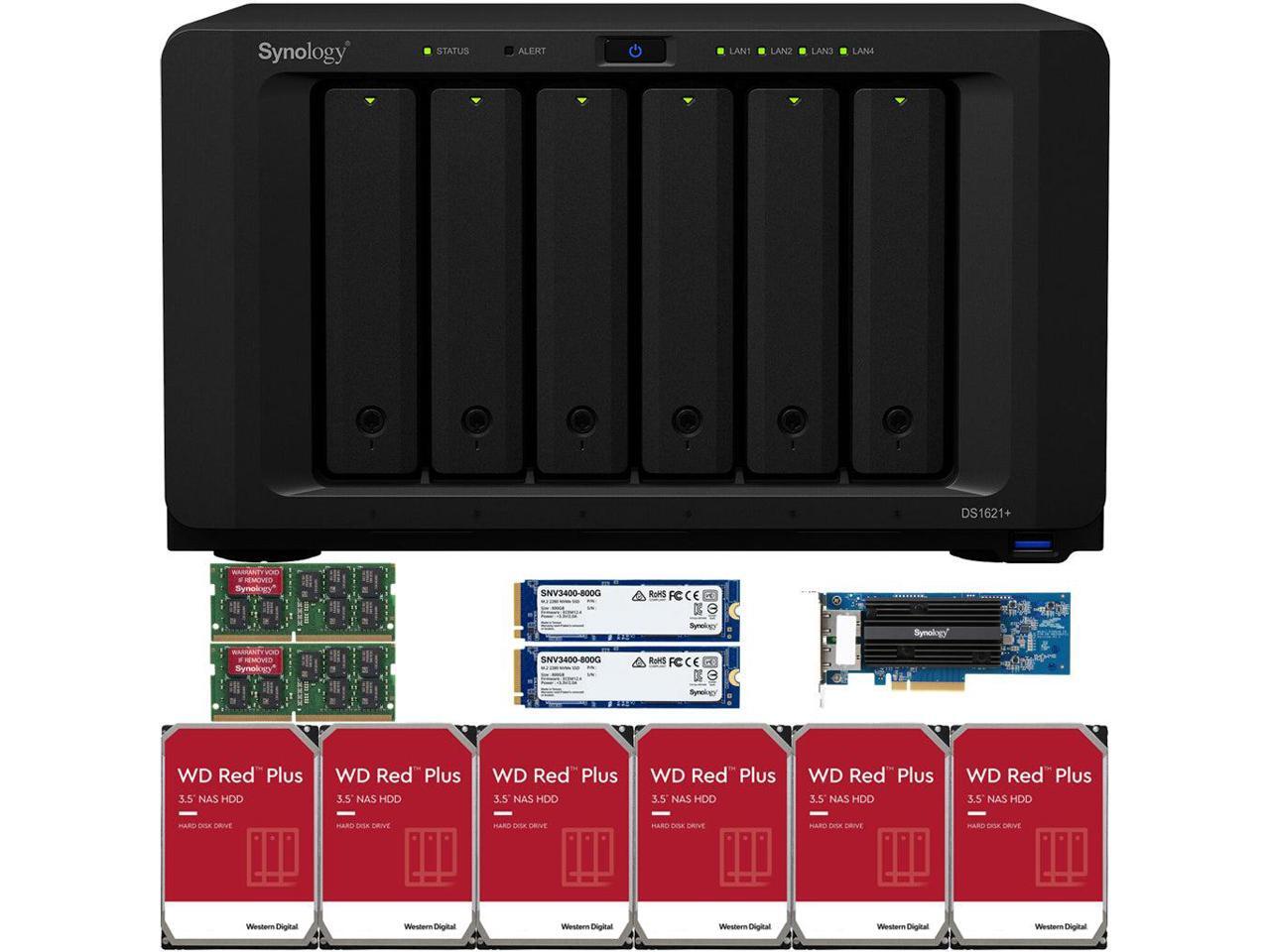 Synology DS1621+ 6-Bay NAS with 16GB RAM, a 2-port 10GbE Adapter, 36TB (6 x 6TB) of Western Digital Red Plus NAS Drives, 1.6TB (2 x 800GB) Synology Cache Fully Assembled and Tested By CustomTechSales