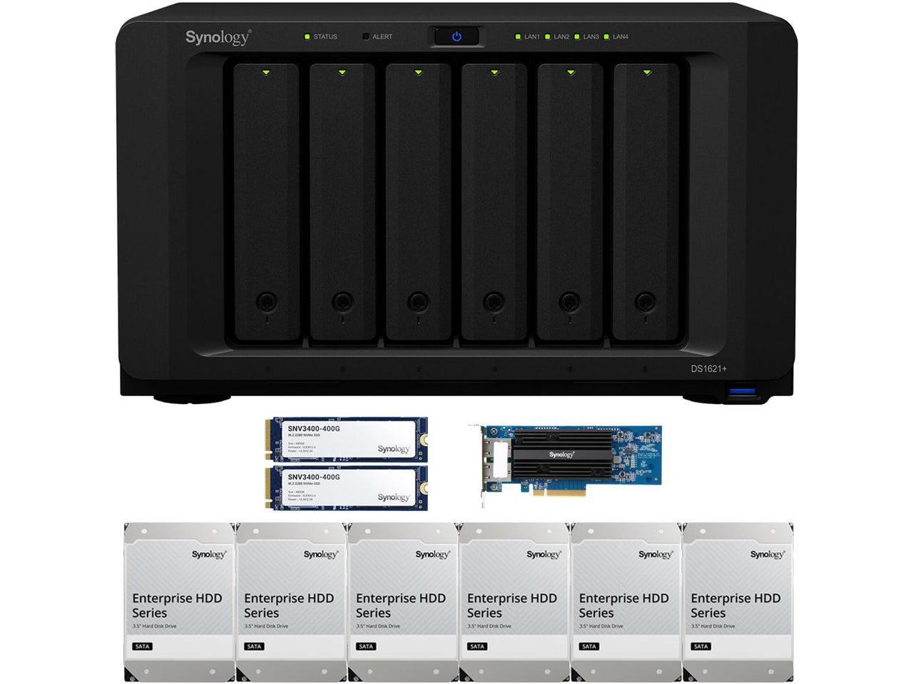 Synology DS1621+ 6-Bay NAS with 4GB RAM, a 2-port 10GbE Adapter and 72TB (6 x 12TB) of Synology Enterprise Drives and 800GB (2 x 400GB) Synology Cache Fully Assembled and Tested By CustomTechSales