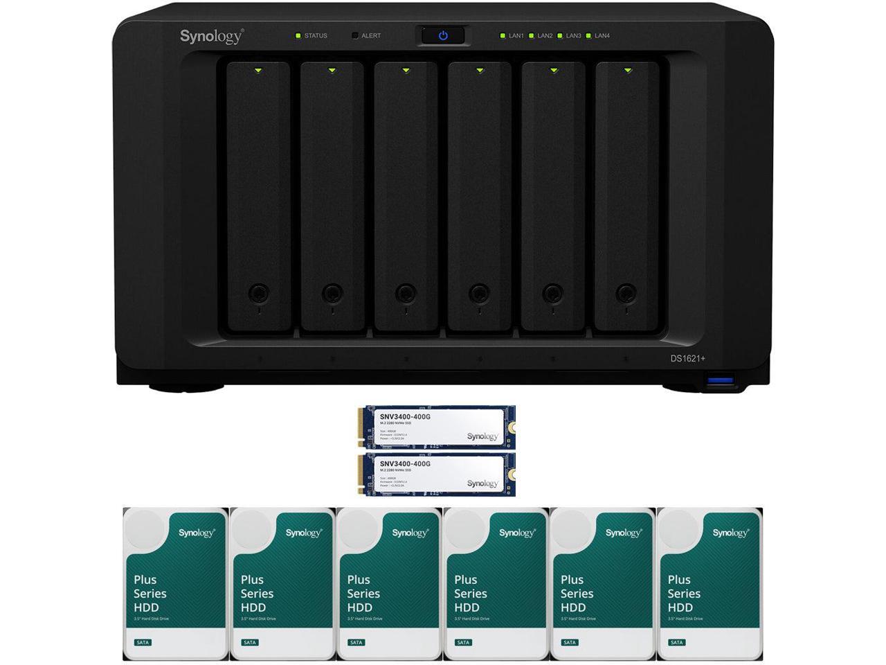 Synology DS1621+ 6-Bay NAS with 4GB RAM and 72TB (6 x 12TB) of Synology Plus Drives and 800GB (2 x 400GB) Synology Cache Fully Assembled and Tested By CustomTechSales