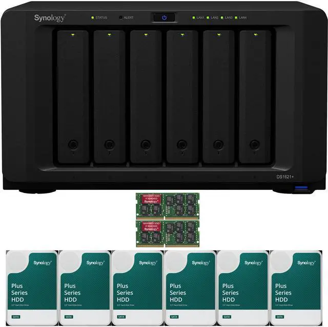 Built with a quad-core processor, an AES-NI hardware encryption engine, and Btrfs file system support, the DiskStation DS1621+ 6-Bay NAS Enclosure from Synology is a high-performance system designed to store and protect critical assets, while also offering storage scalability so you can start small and expand as your data grows. Boost storage performance by installing dual M.2 2280 NVMe SSDs for high-IOPS system caching, or enhance network speeds by adding a 10GbE SFP+ or RJ45 NIC to the PCIe 3.0 x8/x4 slot. This NAS is equipped with six drive bays that are capable of natively supporting 3.5" SATA hard drives, as well as 2.5" SATA hard drives and SSDs, for data storage. Using its six drive bays, this NAS will allow you to store and share many files, including videos, music, photos, and documents with up to 2048 user accounts and 1000 maximum concurrent connections.