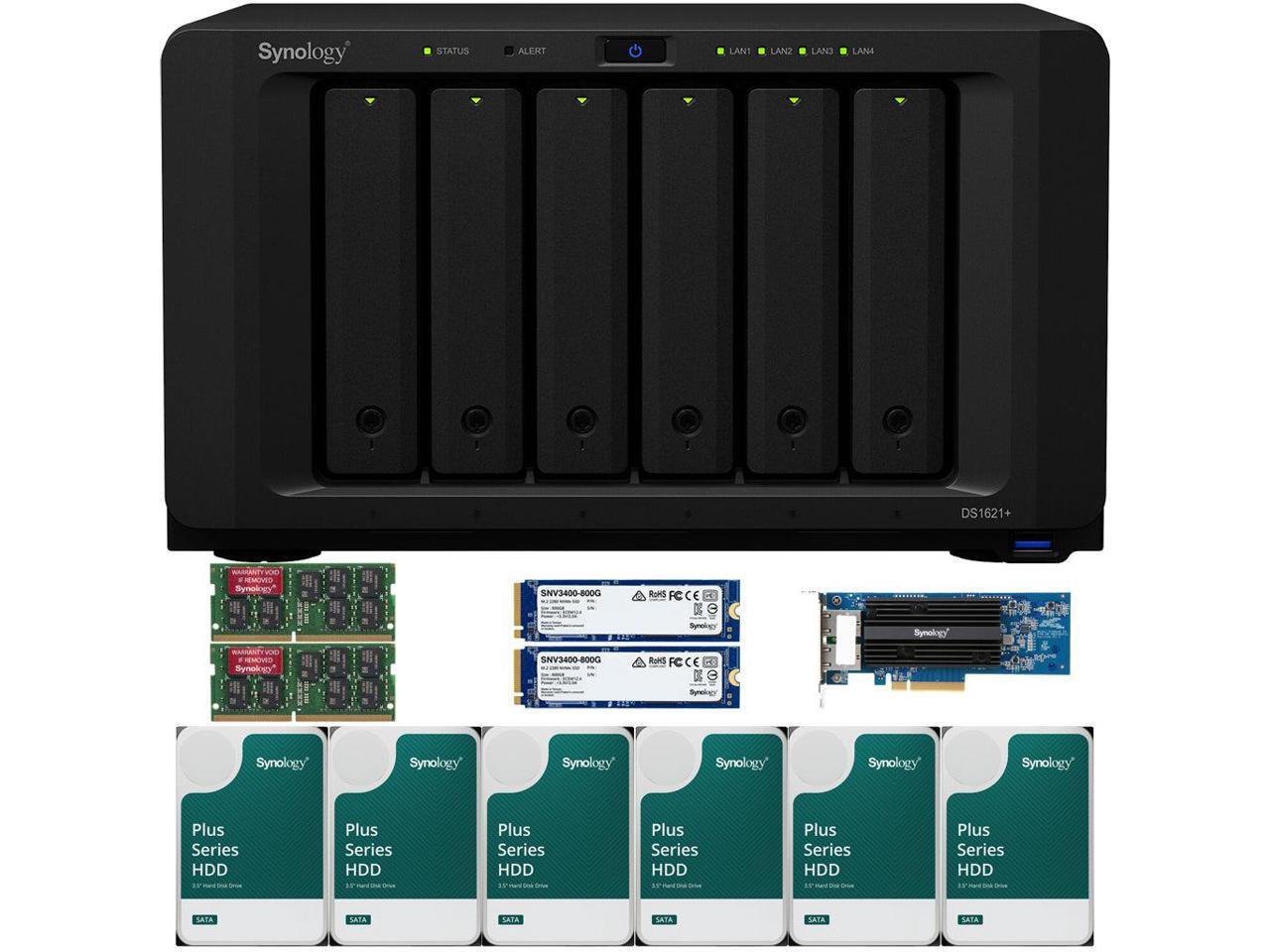 Synology DS1621+ 6-Bay NAS with 16GB RAM, a 2-port 10GbE Adapter and 36TB (6 x 6TB) of Synology Plus Drives and 1.6TB (2 x 800GB) Synology Cache Fully Assembled and Tested By CustomTechSales