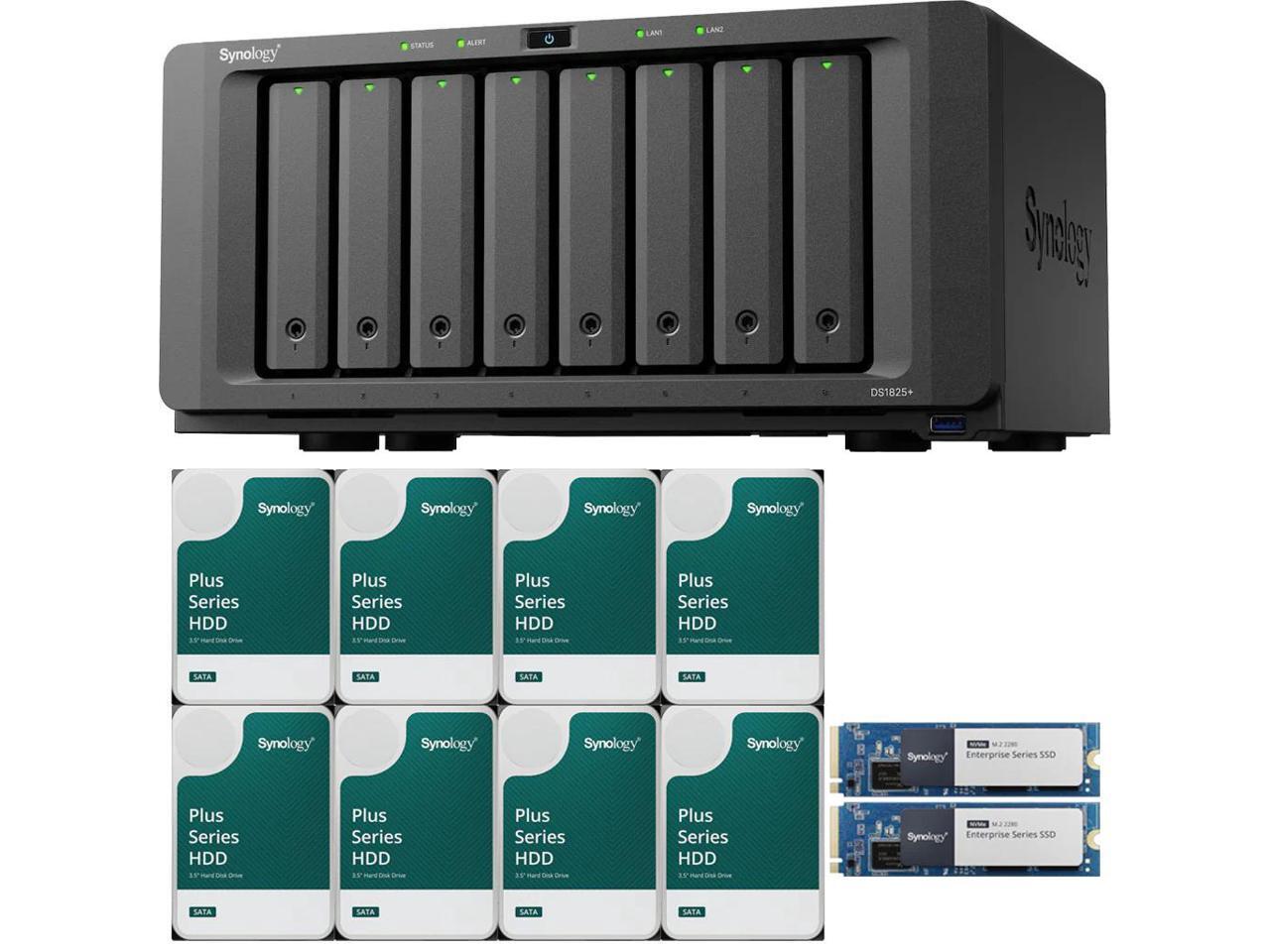 Synology DS1825+ Quad-Core 8-Bay NAS with 8GB RAM and 96TB (8 x 12TB) of Synology Plus Drives and 800GB (2 x 400GB) Synology Cache Fully Assembled and Tested By CustomTechSales
