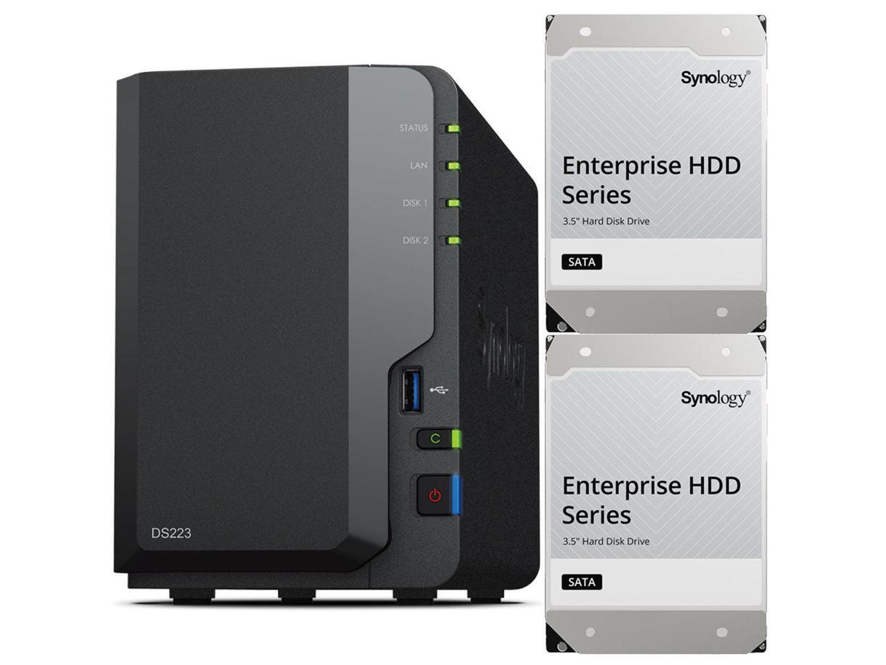 Synology DS223 2-Bay NAS, 2GB RAM, 24TB (2 x 12TB) of Synology Enterprise Drives Fully Assembled and Tested By CustomTechSales