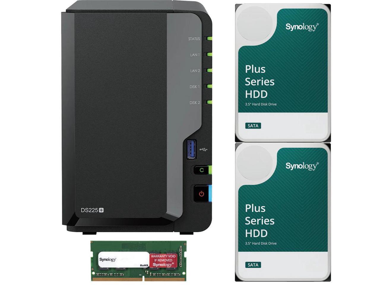 Synology DS225+ Intel 2-Bay NAS with 6GB RAM and 16TB (2 x 8TB) of Synology Plus Drives Fully Assembled and Tested By CustomTechSales