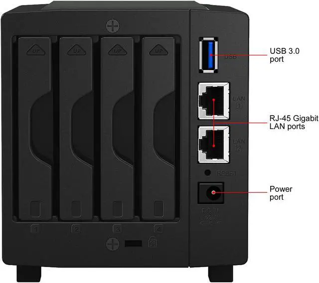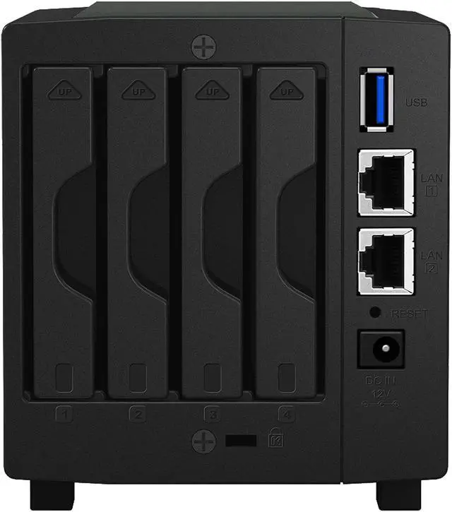 Supports 20TB maximum raw capacity with 4x 5TB 2.5" drives.