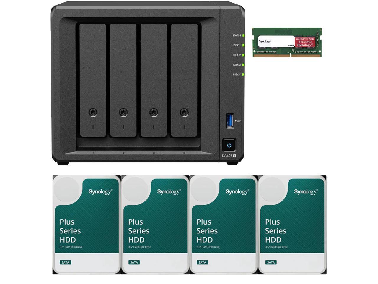 Synology DS425+ Intel 4-Bay NAS with 6GB RAM and 64TB (4 x 16TB) of Synology Plus Drives Fully Assembled and Tested By CustomTechSales
