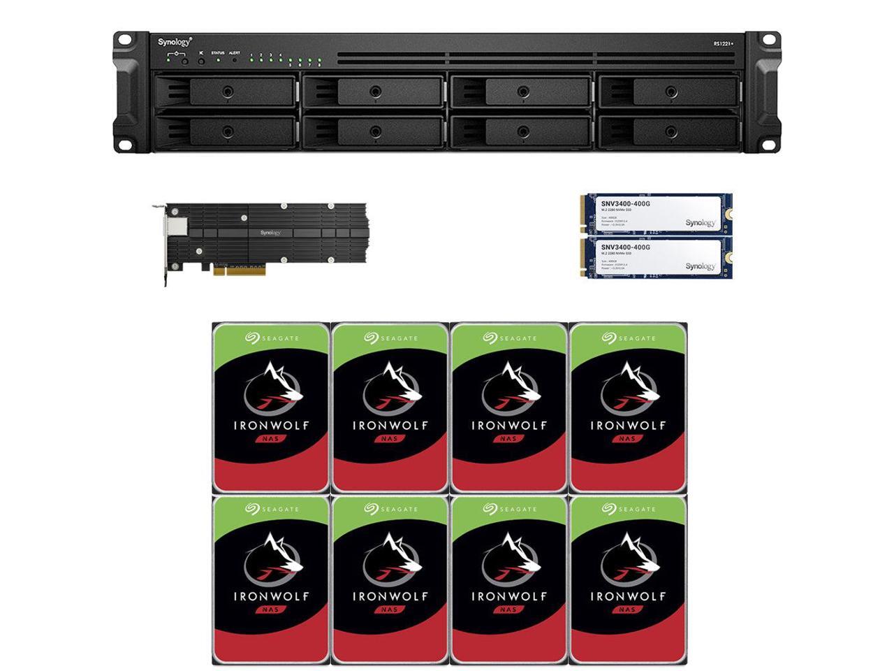 Synology RS1221+ RackStation with 4GB RAM, 800GB (2x400GB) Synology Cache 10GbE and 64TB (8 x 8TB) of Seagate Ironwolf NAS Drives Fully Assembled and Tested By CustomTechSales
