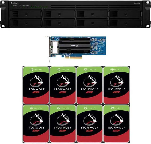 Designed to provide space-sensitive deployments for business and IT enthusiasts, the RackStation RS1221RP+ 8-Bay NAS Enclosure from Synology is equipped to handle heavy workloads in data-intensive environments, with sequential read speeds of up to 2315 MB/s and sequential write speeds of up to 1147 MB/s. This unit has 8 drive bays, each of which natively supports 3.5" SATA hard drives, as well as 2.5" SATA hard drives and SSDs. Should users need to expand the overall capacity of their RS1221RP+, the optional RX418 expansion unit offers an additional four drive bays. This model is powered using dual redundant 350W power supplies.