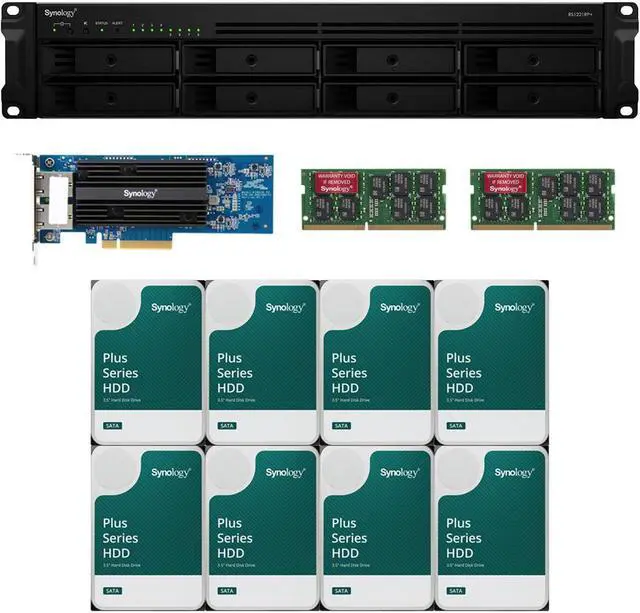 Synology RS1221RP+ RackStation with 8GB RAM, E10G18-T2 10GbE Adapter and 64TB (8 x 8TB) of Synology Plus NAS Drives Fully Assembled and Tested By CustomTechSales