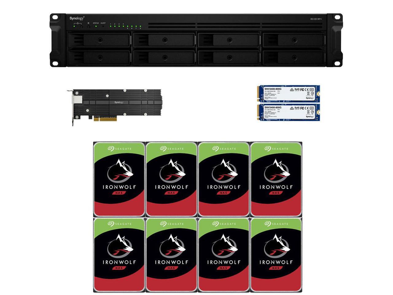 Synology RS1221RP+ RackStation with 4GB RAM, 1.6TB (2x800GB) Synology Cache and 64TB (8 x 8TB) of Seagate Ironwolf NAS Drives Fully Assembled and Tested By CustomTechSales