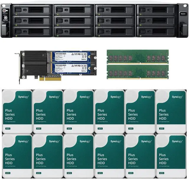 Synology RS2423+ 12-Bay NAS with 16GB RAM and 72TB (12 x 6TB) of Synology Plus Series Drives and 1.6TB (2 x 800GB) Cache Fully Assembled and Tested By CustomTechSales