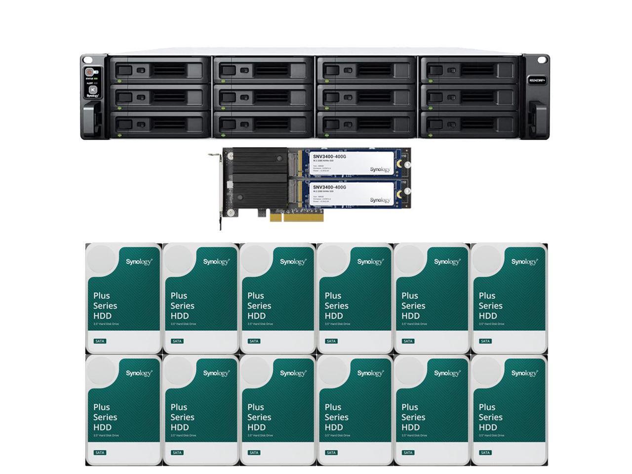 Synology RS2423RP+ 12-Bay NAS with 8GB RAM and 48TB (12 x 4TB) of Synology Plus Series Drives and 800GB (2 x 400GB) Cache Fully Assembled and Tested By CustomTechSales