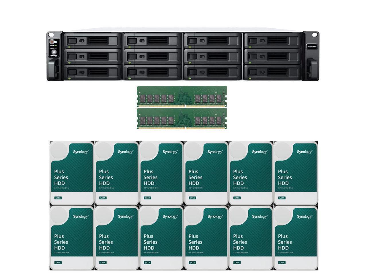 Synology RS2423RP+ 12-Bay NAS with 16GB RAM and 48TB (12 x 4TB) of Synology Plus Series Drives Fully Assembled and Tested By CustomTechSales