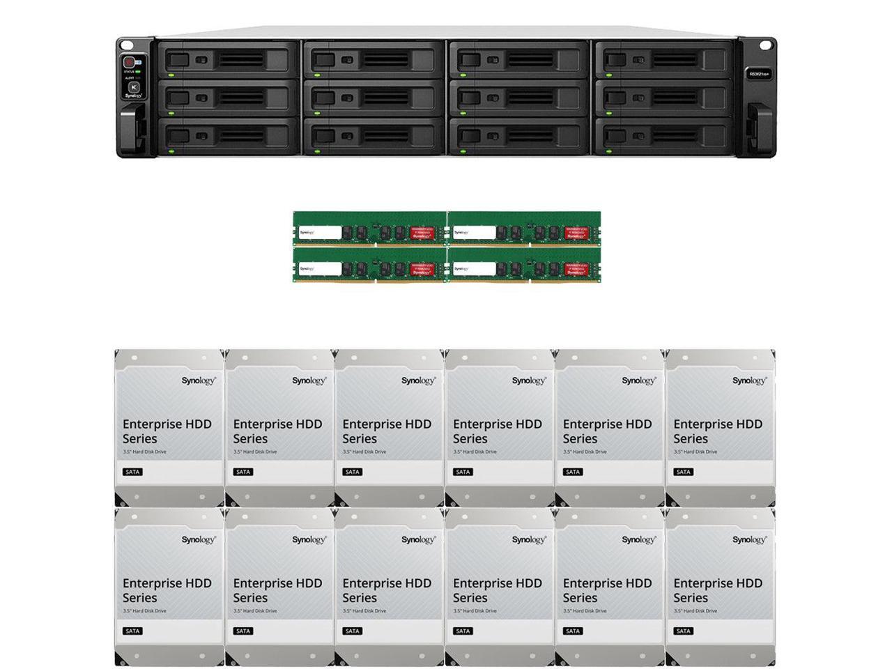 Synology RS3621xs+ 12-Bay NAS with 64GB RAM and 96TB (12 x 8TB) of Synology Enterprise Drives Fully Assembled and Tested By CustomTechSales