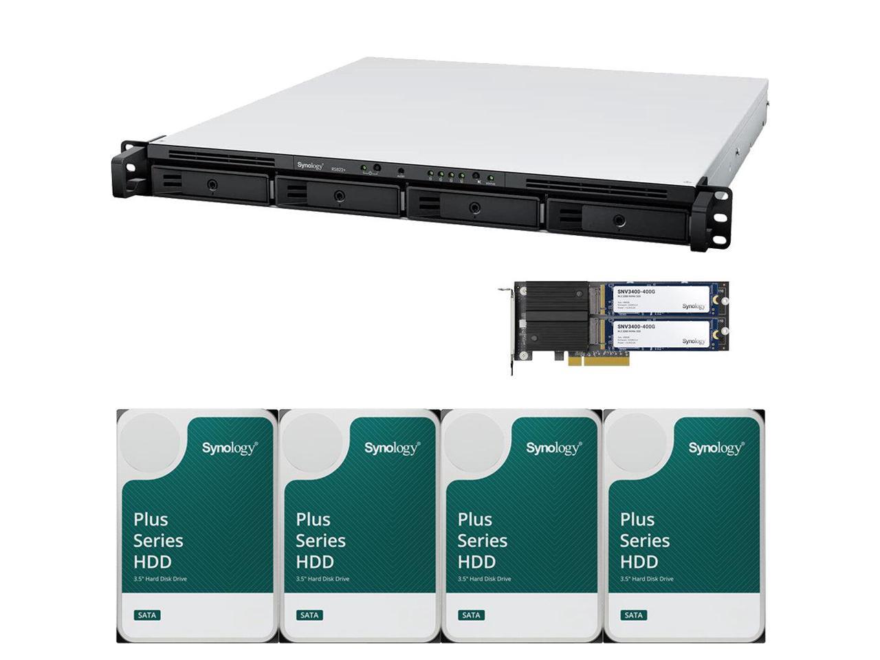 Synology RS822+ AMD Ryzen V1500B 4-Bay NAS 2GB RAM, 800GB (2x400GB) Cache, 48TB (4 x 12TB) of Synology Plus NAS Drives Fully Assembled and Tested By CustomTechSales