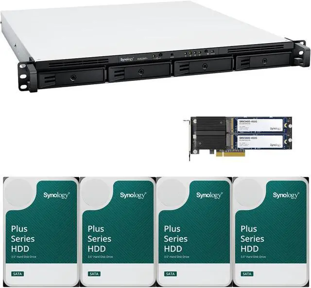 Synology RS822RP+ AMD Ryzen V1500B 4-Bay NAS 2GB RAM, 800GB (2x400GB) Cache, 24TB (4 x 6TB) of Synology Plus NAS Drives Fully Assembled and Tested By CustomTechSales
