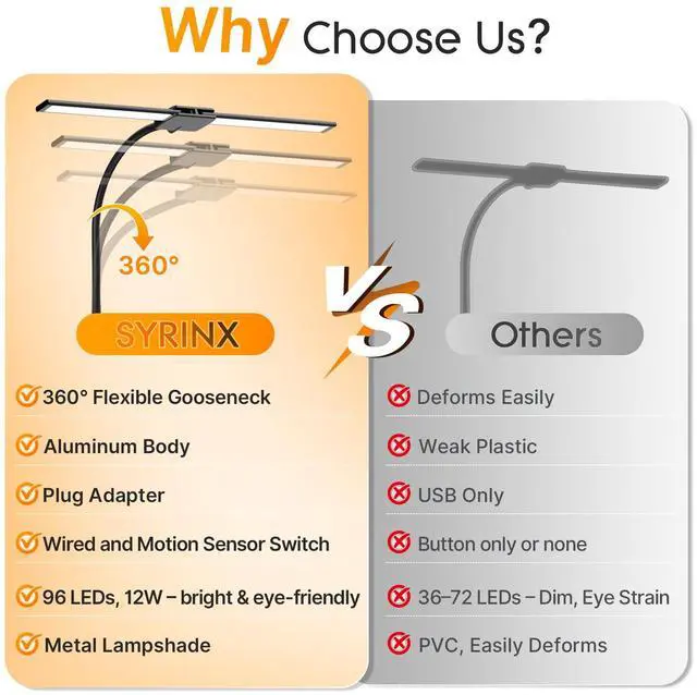 Designed with a 360° gooseneck, the gooseneck desk lamp allows to direct the light to anywhere you need.