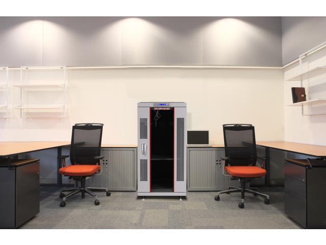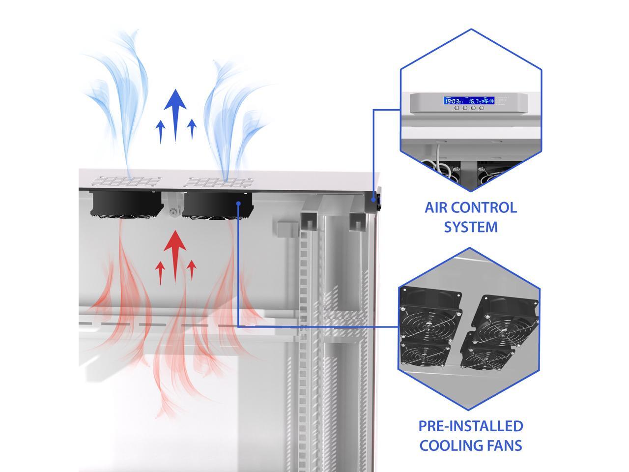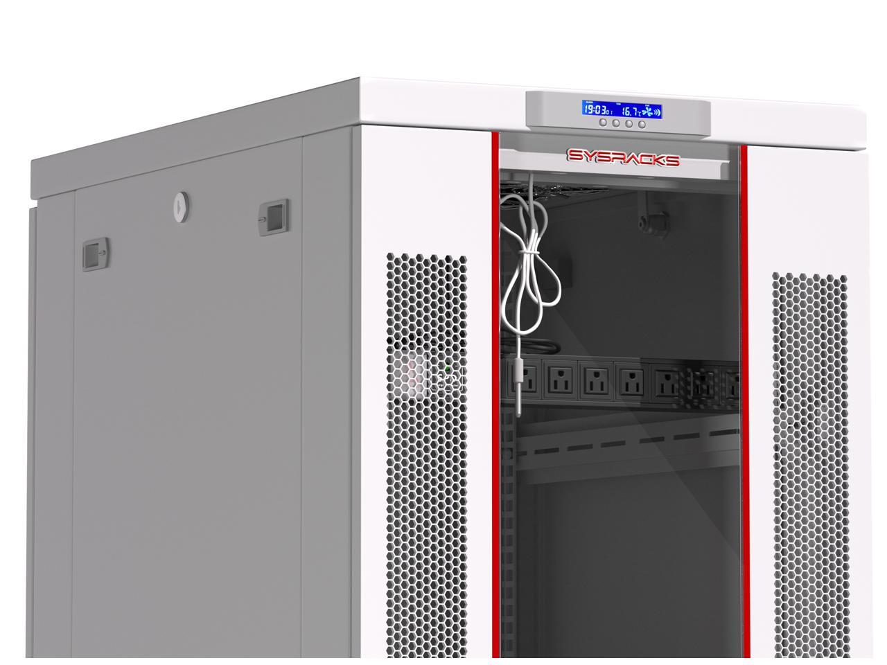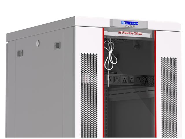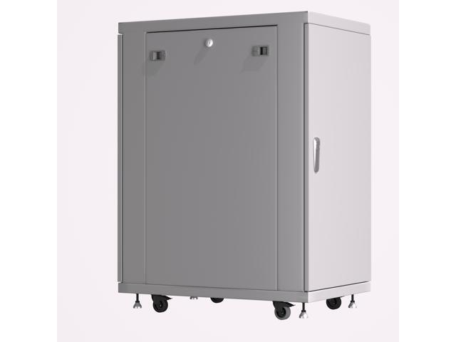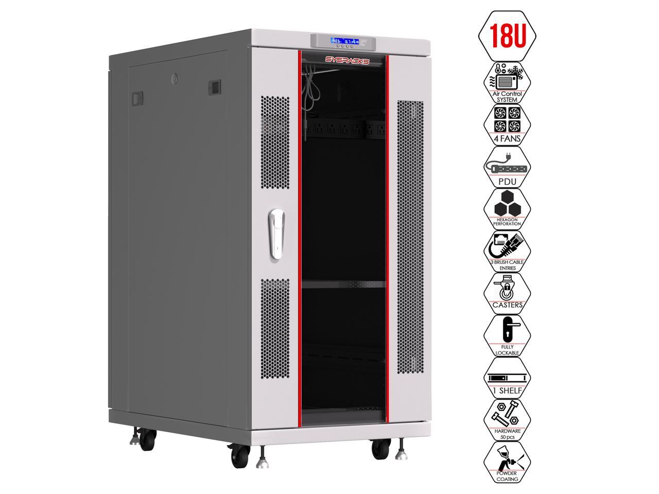 18U 35-inch Depth Grey White Server Cabinet Network Rack Standing IT Networking Enclosure on Wheels with Thermostat and Accessories - LCD-screen - 4 X Cooling Fans - Casters - Vented Shelf - Sensor