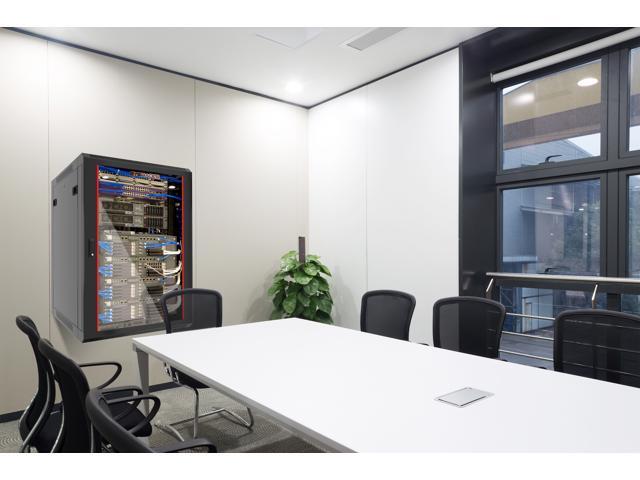 Server Cabinet Networking Rack 18U 24-Inch Deep IT Wall Mount Locking Enclosed Network Enclosure with Casters - 8-Way POWERBAR - WHEELS - 2 X SHELVES - DUST-TIGHT CABLE ENTRIES