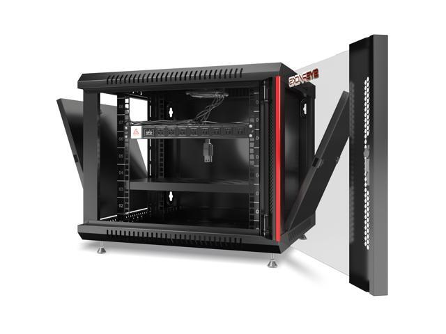 Server Rack – 9U - Wall Mount Rack - Locking Cabinet for Network - Electronics - Security - Audio - Video - AV Equipment - Data Rack - Legs / Power Strip / Shelf / Fan - 18-Inch Deep