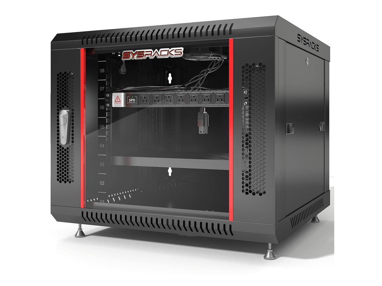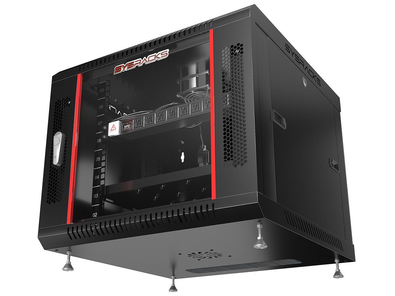 - Ventilation: Active – a cooling network rack fan preinstalled into the top, Passive – air flow circulation due to perforated front door