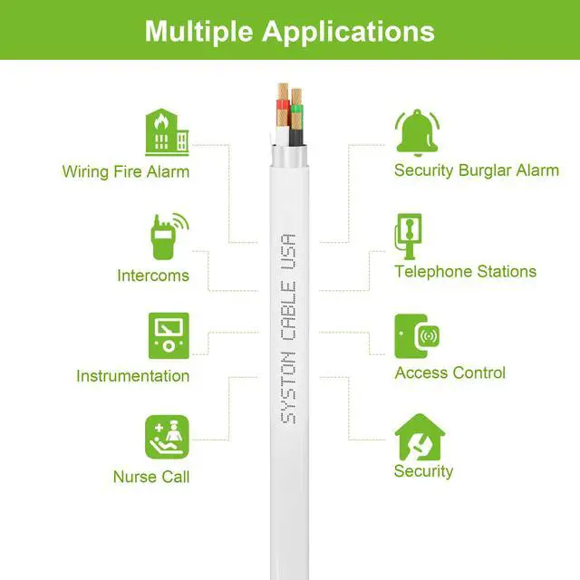 Applications: Wiring Fire Alarm, Security Burglar Alarm, Public Address Systems, Intercoms, Telephone Stations, Communications, Instrumentation, Access Control, Nurse Call, Security and Other Low Voltage Circuits that are Power-Limited Applications.