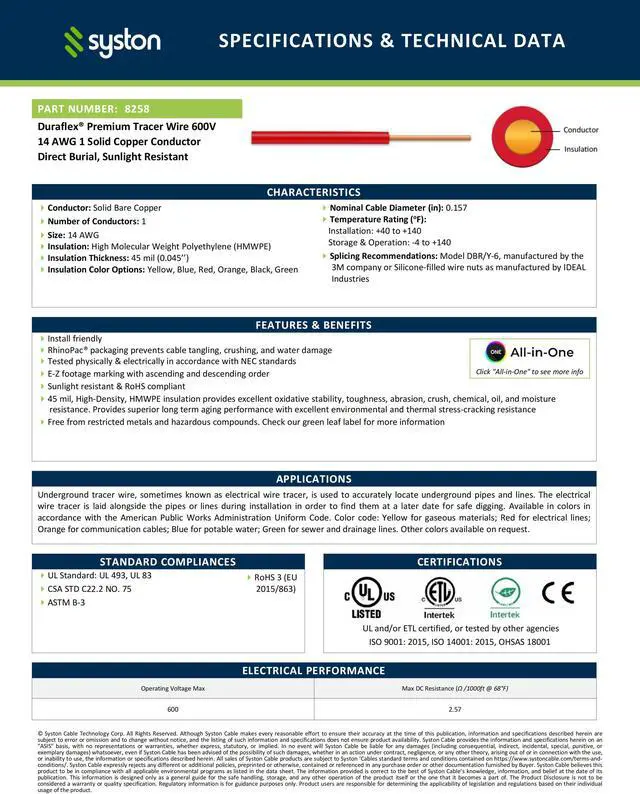 Operates in a wide range of temperatures, so this cable is suitable for installation anywhere outdoors in any part of North America