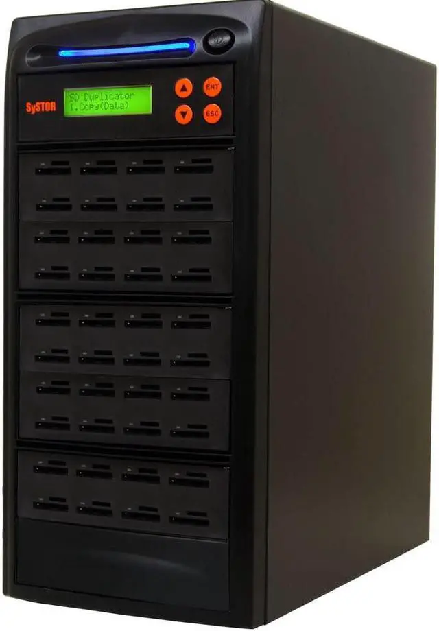 Overview: The SD Duplicators is a Digital Media Revolution that conveniently copies portable SD storage drives without a computer. Advanced asynchronous duplication means no waiting and no interruption as each channel can independently load, unload, and copy. The new SD Duplicators also features user friendly 4-key control with LCD, high speed duplication and bit-by-bit Compare function to confirm successful copies. Reliable, affordable, and convenient, the SD Duplicators are the best companion for any industry.