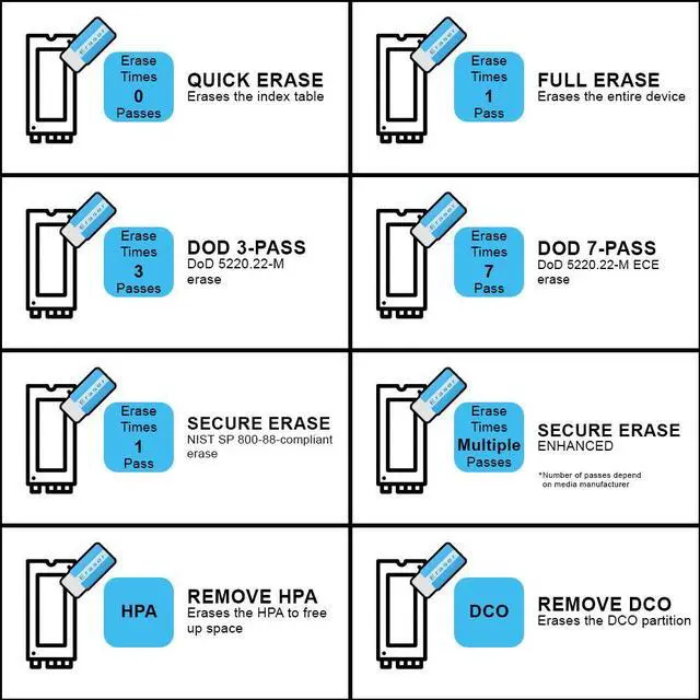 Complies with the 3-pass erase standards of the U.S. Department of Defense (DoD) 5220.22-M.