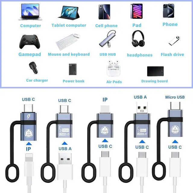 AWINLI USB A to USB C 3.0 OTG Adapter,Type C to USB 3.0 AdapterUSB C to Micro Converter,IP to Type-C Converter,and Type-C to USB A OTG 3.0 Adapter,Supporting PD Fast Charging,Compatible with Galaxy.
