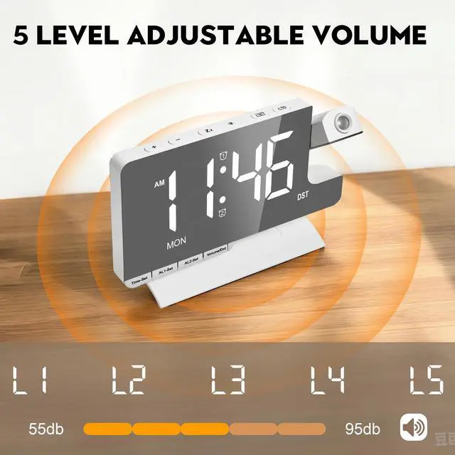 5-Level VolumeThe mirror alarm clock has a variety of volume options from 55-65-75-85-95dB. You can choose the appropriate volume according to the depth of your sleep, a constant beep can be heard at least 20 feet, which is very suitable for tall sleepers. Strong enough to wake up sleeping children too. This alarm will last until you disable it or press snooze.