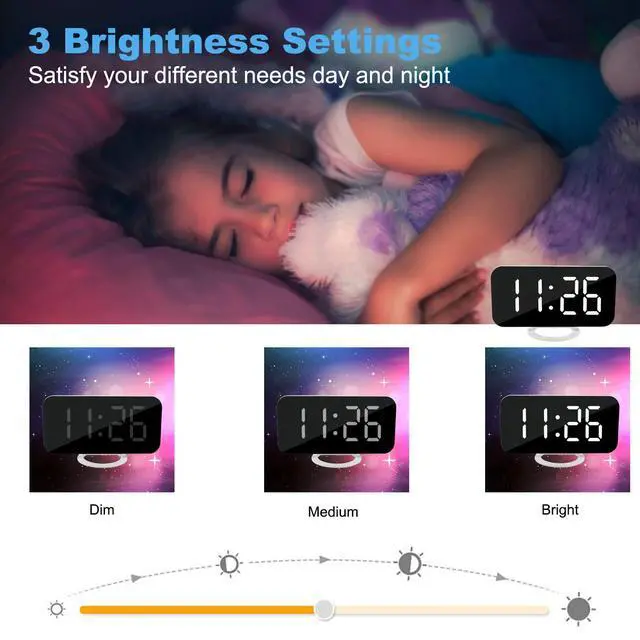 1. The alarm clock needs to be connected to a power cord (DC5V/1A) to display properly.